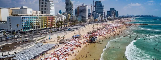 Tel Aviv, often referred to as “the city that never sleeps”, is a dynamic metropolis on Israel’s Mediterranean coast. Known for its magnificent beaches, Bauhaus architecture and vibrant atmosphere, Tel Aviv is a leading economic and technological centre. The city is also home to a thriving arts scene with renowned museums such as the Tel Aviv Museum of Art, a lively nightlife, and a varied cuisine that reflects the cultural diversity of its inhabitants. As Israel’s second largest city, Tel Aviv plays a crucial role in the country’s culture and innovation.